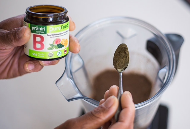 Add one scoop of PureFood B to water, juice, or your favourite smoothie recipe in the morning to get the B-Vitamins you need to kick start your day.